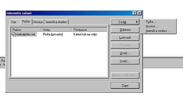 Za odhajajočo pošto lahko uporabite tudi strežnik vašega ponudnika internetne povezave.